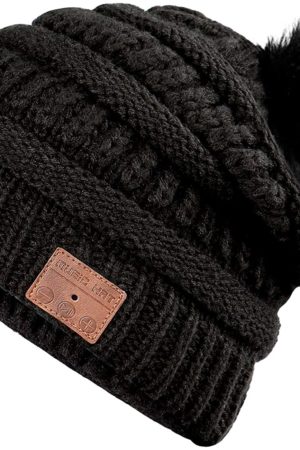 Bluetooth Beanie for Women, Deegotech Women Winter Hat, Gift for Women Girls Mom, Bluetooth 5.0 Wireless Headphones Beanie, Pompom Knit Beanie Hat Warm Ski Cap-Black